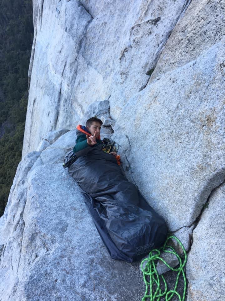The rain was supposed to be gone around 7 pm, but around 430 it looked like it wasn’t going to come at all. Clay’s brother Perry and Perry’s girlfriend Camy helped us haul our massive load to the base so that we could haul it to hearts where we planned to spend the night. We approached this climb wanting a true big wall experience. We brought a ledge, 10 gallons of water, 6 days worth of food, and backup essential gear in case we dropped anything crucial. Our train consisted of 2 haul bags, a day bag, the ledge, and the poop tube. Looking back we brought way too much stuff, but it was all part of the experience and I’m grateful for it. We began hauling around 7 pm and got to hearts around 12. I don’t know if hauling 200ish pounds to hearts in 5 hours is fast, average, or slow. It certainly felt slow and backbreaking at the time. While the weather forecast of rain everyday was a bummer, I was somewhat glad that we wouldn’t have to deal with many other parties, because I didn’t want to be the ones to hold someone up. We settled into our bivy sacks and spent an amazing night on Hearts watching the stars