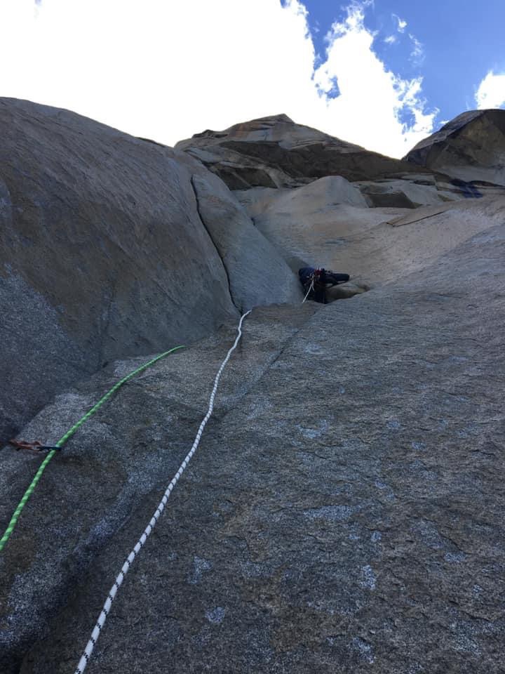 Night time descended, and Clay took over for the Scotty Burke Offwidth. This pitch looked absolutely wild and bizzare. Clay was quickly out of sight, and I didn’t hear a peep from him until he said off belay. As I belayed I wondered how he was doing and how he was feeling about the pitch. After what seemed like a life time Clay shouted off belay. As I cleaned the pitch I was enamored by the pitch and even got to climb a short section where you chimney between three separate walls. Clay did amazing, but admitted the rope drag at the end was heinous.
