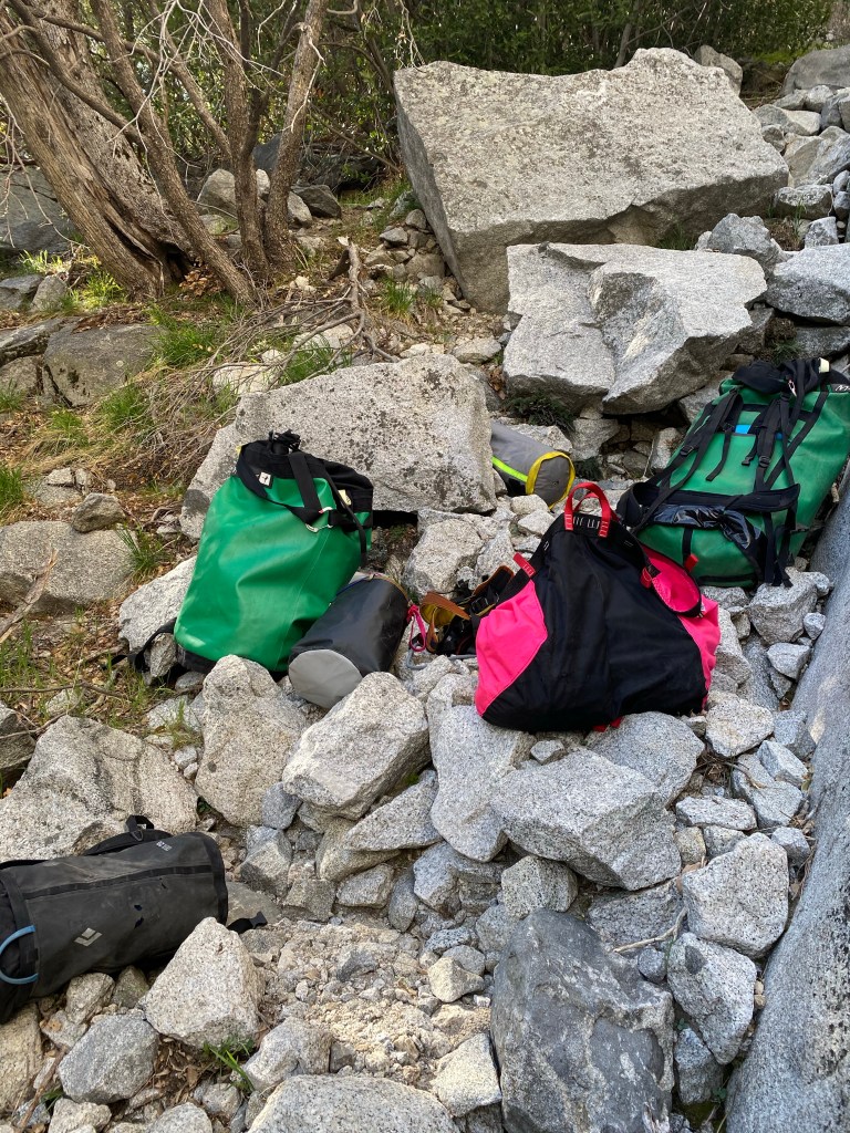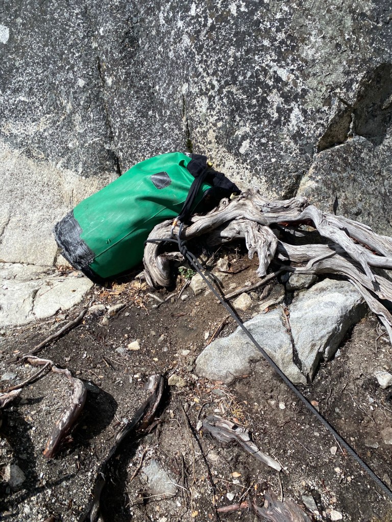I spent the majority of Monday schlepping load to the base of my ropes, which were just a little down the hill from the Hearts Ledge fixed lines. I ended up walking back and forth a total of 5 times to get all my stuff to the base station of the climb, each round trip taking approximately 50 minutes. While making my way back and forth I met a party (Ari and Pete) who were also hiking loads up intending to do the Triple Direct, which would intersect with my climb in the middle portion. This is the one section I anticipated potentially running into another party. We spoke briefly about timing and where we expected to sleep. I assured them they would be faster than me and I had a ledge so we would work it all out. They told me they anticipated starting the route Wednesday, which is around when I hoped to be making my way to Mammoth Terraces as well, so we would likely intersect. As they continued to the fixed lines, I overheard them have a brief conversation about the required headspace I had to be into solo The Muir Wall. I chewed on this quite a bit because I’ve never thought of myself as a particularly confident climber. I often hold myself back because of a lack of headspace. I get scared to fall, even when I have done so over and over sport/trad free climbing. It’s always fine, nothing bad has ever happened, and yet I have a hard time just going for it when I onsight, needing to work up the courage to give it all I have, usually on a redpoint. I started thinking more about that small comment I heard and thought maybe I am in a pretty good headspace. Not in the way I typically think about it, but I am confident that my systems work and that I can pull this off. I am confident that I will not kill myself, that I can reach the summit, and that I will not end up needing a rescue off this damn mountain. I am confident that I won’t fall, but that if I do, I will be caught by the rope, and everything will be ok. This internal dialogue was a much-needed boost to my confidence.