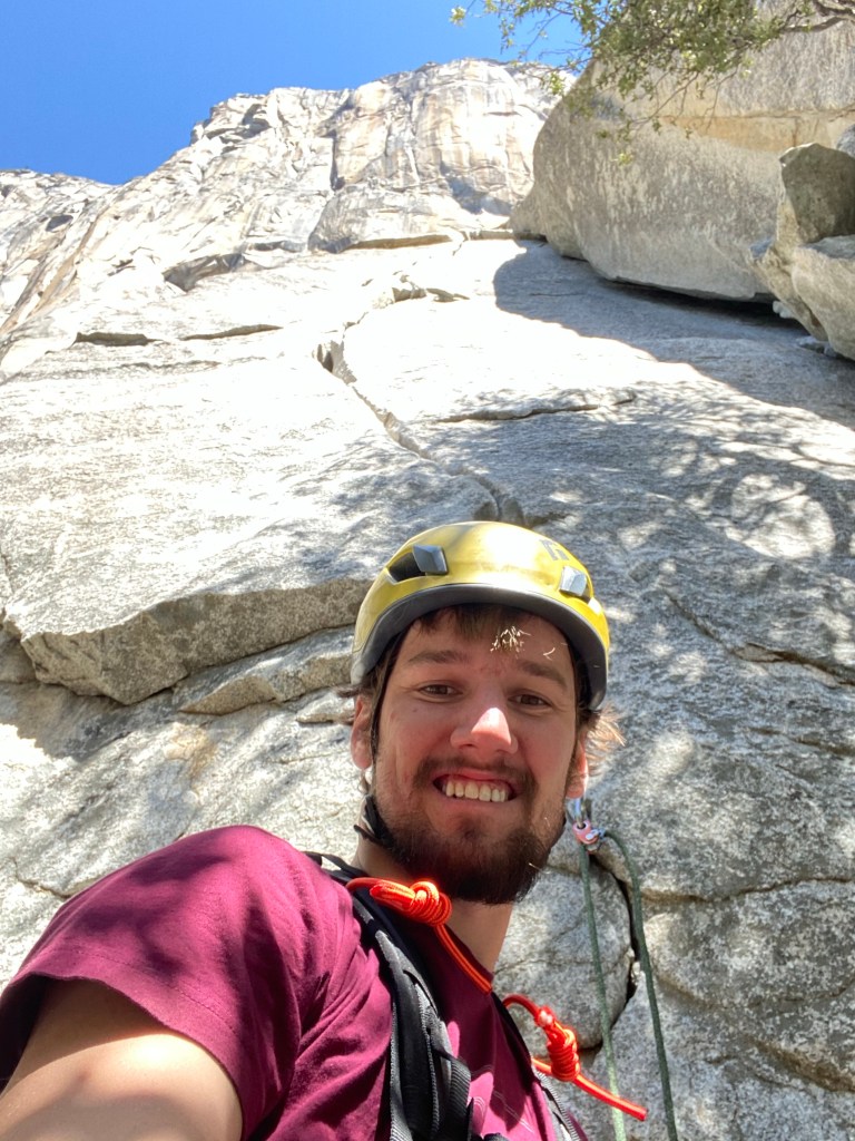 In 2017 I met this 16-year-old kid named Clay, who shared a birthday with me. The bond was tight, and he quickly became my best friend. I watched him grow from a little kid, 5.10 climber, to crushing 5.13’s, on sighting 5.12 C’s, and just being an absolute beast. He was climbing circles around me. Sometime in 2018, he said we should climb El Cap, which was nowhere on my radar. I agreed, but it didn’t seem like much. At some point, it became clear this was a goal of ours, and we started to get serious about it. In spring of 2019 we went out to Yosemite, in absolutely awful conditions, and after a week of watching it drench the rock, there was still nothing but rain in the forecast. Rather than run home with our tails tucked between our legs, we figured we ought to try, and went for it. We “swam” our way up Freerider, soaked to the bone, climbing at night when it wasn’t actively raining, and sleeping, or trying to, during the daytime when it was. We reached the top after just under a week of suffering, but we did it. The hike down sucked, took all day, and I vowed to never climb a big wall again!