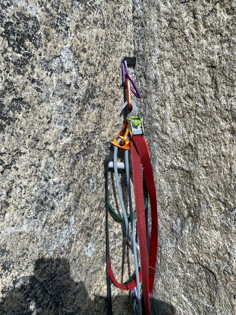 My system used was a GriGri+ with an Edelrid Swift Pro (8.9) rope and a dynamic 10.0 Beal Tiger for the Haul line, with the ability to switch to that rope and a GriGri 1 if needed. Zabrok thinks the 8.9 is too thin, but I thought the system worked great. I didn’t fall though on the route so who knows! Maybe I was dangerously close to disaster the whole time. For a rack, I brought 4 lost arrows (nailed 3 on the route), 7 beaks (nailed 3 on the route), 3 sets of offset cams, 2 sets of offset nuts, a set of ball nuts, a set of RP’s and a set of peenuts, 3x all cams .1-#4, 2 #5’s, 1 #6 (not needed after first 10 pitches, and probably not needed on first 10 pitches, but very nice to have). I also brought 1 cam smaller than a .1. I brought 2 hooks but only used 1, made 3 hook moves the whole route, probably only 1 of which was mandatory. I also brought a set of heads which were completely unnecessary.