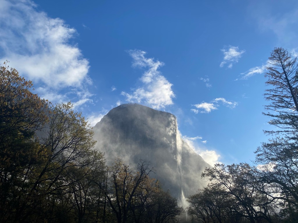 Both the Freerider boys and the Triple Direct team were planning on starting on this day, however, the weather kept them away. It rained overnight, and after I struggled with the ledge, I didn’t even bother busting out the fly. Instead, I stayed in my bivy sack and waited out the weather in the morning which involved a decent amount of rain, sleet, and hail. Once the precipitation stopped, I emerged and saw the skies were still threatening. Without a ton of time to play with, I opted to get up and just start climbing, weather be damned. My first time climbing El Capitan was in the spring of 2019 and the entirety of the mountain was a waterfall. I figured whatever this day threw at me would be minuscule compared to that experience.