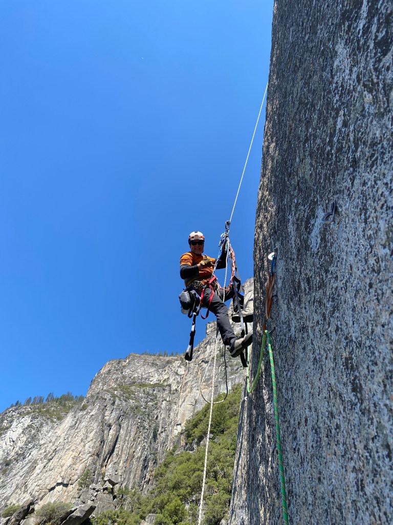 Our goal for Day 2 was to make it to the top of pitch 11 and rappel to a ledge straight below at what’s called pitch 9.5. The group below us had showed up and taken all their gear and descended back to the valley. I’m not sure if they looked up, saw all the groups, and opted not to go, or if maybe they had left their gear there after previously rappelling the route. Regardless it was nice to know that we were not going to have to share that bivy ledge with anyone, as it was only just big enough for the three of us.